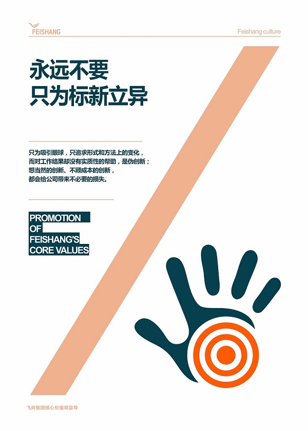 在飞尚集团企业文(wén)化體(tǐ)系中(zhōng),如果说使命宗旨、企业愿景是企业战略层面的事,意境太过高遠(yuǎn),那么核心价值观则与每一个人息息相关,因為(wèi)它直接关系到我们的一言、一行,體(tǐ)现為(wèi)我们做人、做事的方式。尤其是核心价值观行為(wèi)指引,更為(wèi)我们提供了清晰的标准、规范、底線(xiàn),它帮助我们判断在公(gōng)司应该支持什么、赞赏什么、反对什么、批判什么。